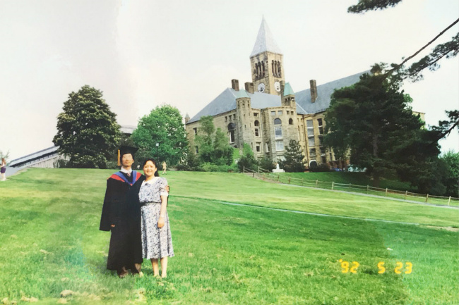 ▲邱夷平获得康奈尔大学获得博士学位,与林旭在校园里的合影。为学生提供最好的教育机会。一直为事业而努力,邱夷平和林旭没有要自己的孩子。不过,这对伉俪将学生当作生命的延续。“孩子只是基因的延续,但真正能将自己的思想、学术发扬光大的,是学生。”这是两人的共识。