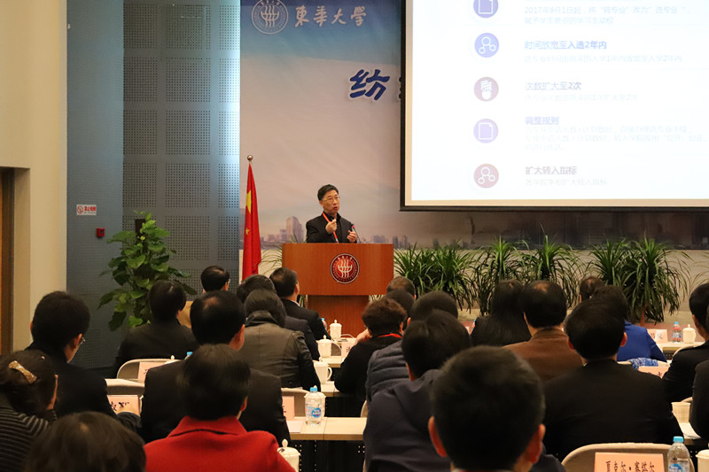 蒋昌俊在会上致辞,介绍了学校“三步走”发展战略,不仅要坚持“12345”内涵发展和 “12211”外延拓展,还要面向未来加强战略谋划。现代纺织科学与工程一流学科建设必须在这一总体战略部署下,立足中国特色,瞄准世界一流,着力发展跨学科、综合性、涵盖纺织全产业链的六大学科领域。通过近期和中长期建设,纺织科学与工程学科要实现自身的转型和发展目标,同时要带动其他学科的发展。他指出,在加强“双一流”建设及贯彻落实全国教育大会精神背景下,我校要把坚持“以本为本”、推进“四个回归”、努力建设一流本科、做强一流专业、培养一流人才这一新时代交给高等教育的首要任务,作为东华人不可推卸的责任和担当。在此背景下召开的纺织一流学科人才培养战略研讨会可谓恰逢其时。他希望以研讨会为契机,加强交流讨论,集思广益,推动我国纺织学科人才培养体系建设,提升一流人才培养的能力和质量,为新时代我国高等教育事业发展做出新贡献。