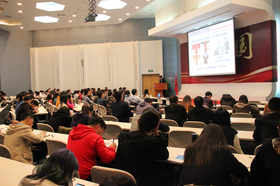丁彬谈到,从原始社会遮衣避体现代社会,纺织历经了巨大的发展变化,现代纺织围绕生态、时尚、功能、环保、科技五大元素不断创新。一方面,纺织技术逐渐向信息化、智能化、自动化、集成化方向发展;另一方面,科技的进步、人们生活水平的不断提高,促使千百年来单一功能的纺织材料逐渐向多功能、高性能、智能化、多应用等方面发展。未来纺织材料可在隐身服装、恒温服装、未来战衣、太空电梯、传递信息、高强假肢等方面进一步突破。他就如何成为一名创新型人才谈了自己的看法,认为创新性人才要具备以下几种特质:好奇心、洞察力、想象力、团队精神和毅力。他还鼓励同学们认真学习,投身科研,培养创新精神,“没有夕阳的产业,只有夕阳的思维;坚持科技创新,推动纺织由大变强”。