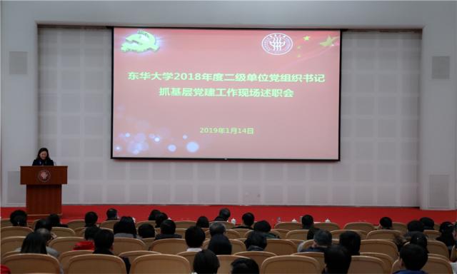 1月14日,学校党委在松江校区召开2018年度二级单位党组织书记抓基层党建工作现场述职会。党委书记朱民,党委副书记刘淑慧、崔运花,党委副书记、纪委书记金海燕,副校长邱高,校党委委员、各二级单位党组织委员会成员、党委主要职能部门负责人、部分“两代表一委员”、院长、系主任、基层党员干部和师生代表等120余人参加会议,11位二级单位党组织书记进行了现场述职,朱民作点评和讲话。崔运花主持会议。