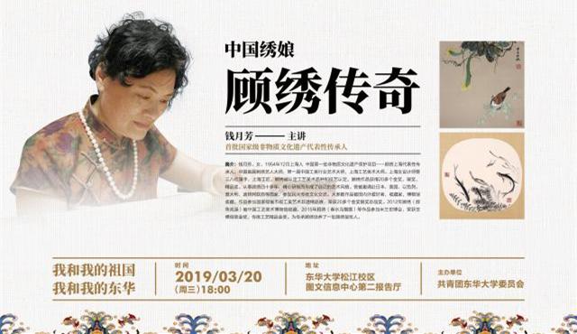 在本次讲座中,钱月芳将系统和全面介绍顾绣这一非物质文化遗产的由来,并深情讲述自己与顾绣结缘以及致力于顾绣传承的奋斗历程。此外,现场师生还将可以在传承人的现场讲授下,开展顾绣体验,在“穿针引线”的过程中体会中国绣娘的责任与坚守。