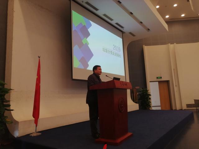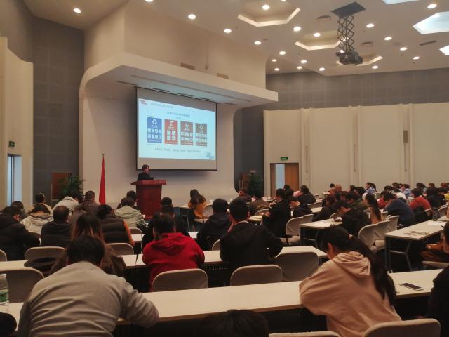 付本林从政策解读、分类要求和学校推进三个方面进行讲解,他提出无害化、减量化等垃圾分类的基本要求,让大家从整体上更加深入了解垃圾分类工作的重要性和必要性。他提到目前我国的垃圾分类工作与一些国家还有一定差距,改善这一状况需要全体人民提高认识、自觉行动。对于学校而言,他指出要把食堂和学生宿舍作为工作重点,做好校园内快递包装和外卖餐盒的回收利用及垃圾运输工作。