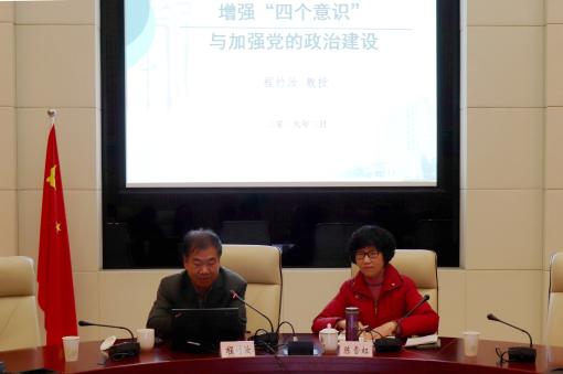 为进一步深入学习《中共中央关于加强党的政治建设的意见》,深化机关党员干部和支部书记对党的政治建设的全面了解,加强机关党支部的政治建设,3月27日,机关党工委邀请中共上海市委党校教授程竹汝为机关党工委理论学习中心组成员及支部书记作专题辅导报告。机关党工委书记陈雪虹主持报告会。