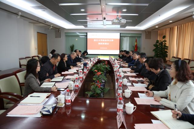 4月2日,浙江大学党委副书记郑强一行10余人到访我校进行调研交流。党委书记朱民,党委副书记刘淑慧,党委副书记、纪委书记金海燕会见了郑强一行。朱民代表学校对浙江大学一行的到访表示欢迎,并就两校进一步加强各领域合作,共同加快推进“双一流”建设进行了交流。刘淑慧主持调研交流会。