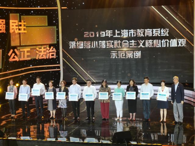 (尹弘为上海教育系统落小落细落实社会主义核心价值观示范案例获奖单位颁奖)