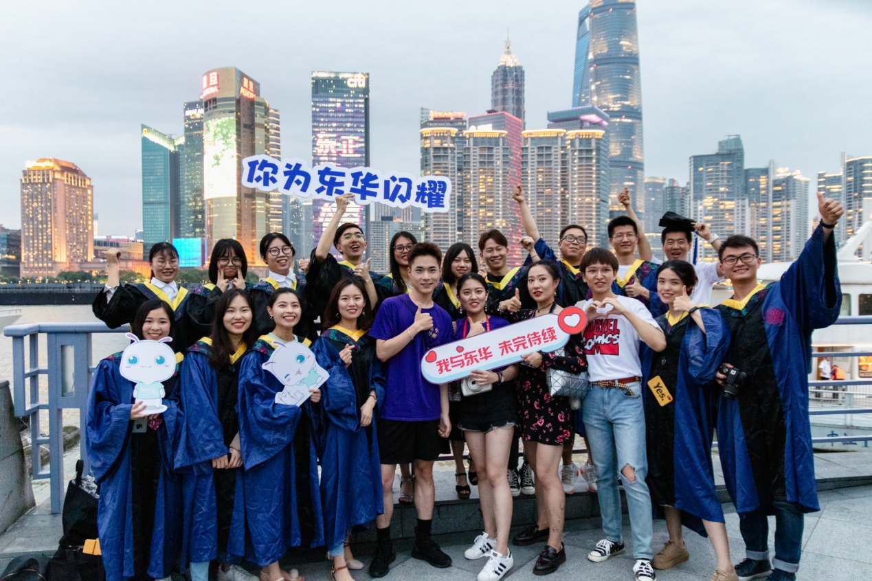 6月25日,我校2019届毕业典礼拉开大幕,当晚,上海地标建筑之一的“外滩之窗”再次为东华毕业学子点亮,大屏幕上轮番显示着为我校2019届学生毕业广泛征集而来的毕业祝福语,“I❤DHU”“崇德博学,砺志尚实”“东华有面”“爱在上海,学在东华”“东华人,正青春”等逐一闪耀亮相外滩之滨,把毕业别离化作灯光里的嘱托。