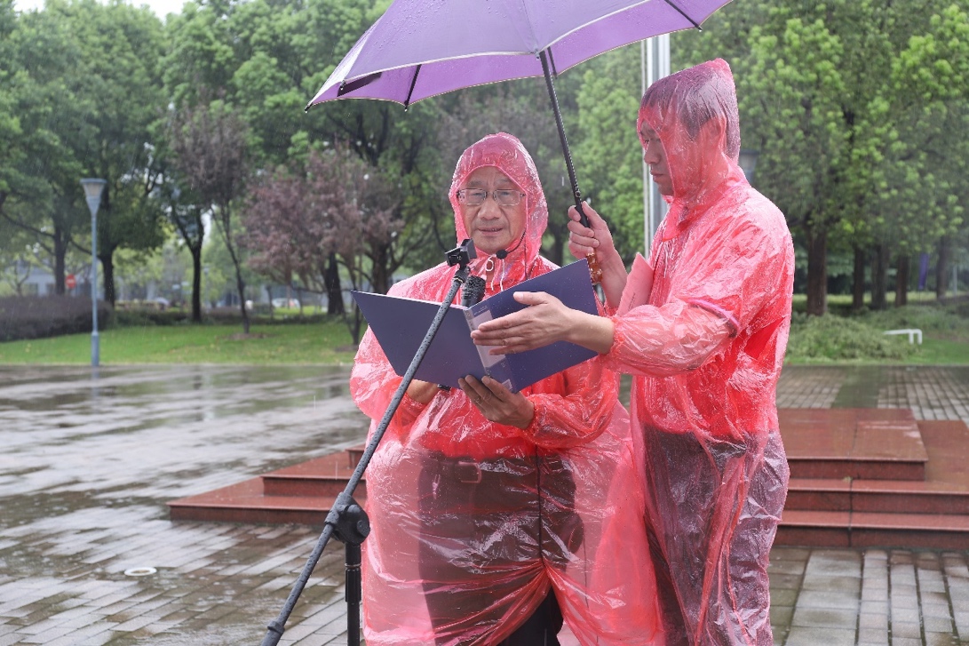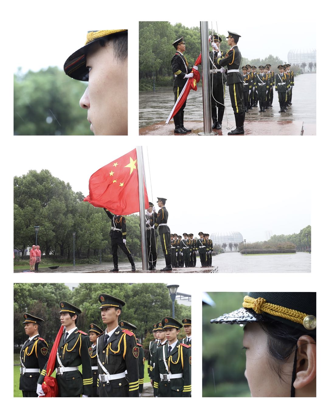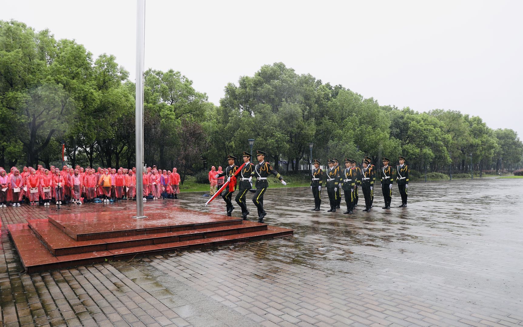 此次活动中,国旗护卫队同学们冒雨出旗,充分展示了学生们爱国荣校的青春之志。