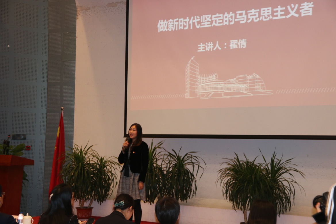 纺织学院新丝路讲宣团翟倩带来党课《做新时代坚定的马克思主义者》,她用通俗易懂的语言和生动形象的语言表述为大家打开了马克思主义思想的大门,用改革开放取得的伟大成就和身边感受到的小城变化、大城发展向我们诠释了坚定习近平新时代中国特色社会主义思想的正确性和必要性。