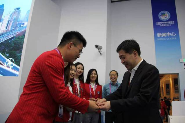 俞建勇一行看望我校第二届进博会志愿者