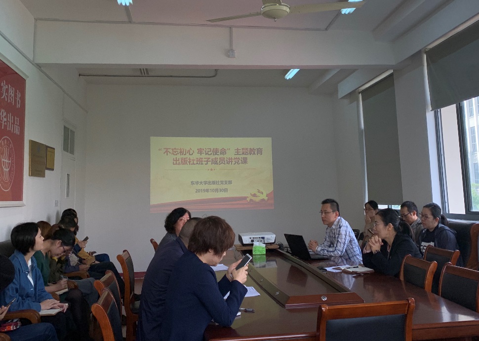 出版社党支部书记、社长陈珂,总编周德红,副社长曹继正分别作了题为“浅谈新时代出版人的职责与使命”“坚持出版方向,牢牢把握意识形态工作主动权”“图书编校质量的提高”的党课。大家一致认为,坚持中国特色社会主义文化发展道路,坚持文化自信,推动社会主义文化繁荣昌盛是出版社每一名员工的责任与使命。