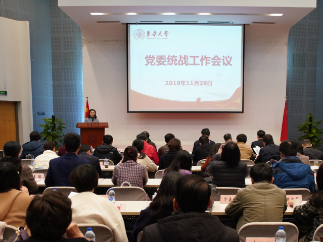 11月29日,学校党委召开统战工作会议,回顾总结两年来统一战线工作成绩并部署下阶段重点任务,强调要以习近平新时代中国特色社会主义思想为指导,坚定初心使命,坚持党的全面领导,加强新时代统一战线工作,团结带领全校师生员工为建设“奋进东华”凝心聚力、接续奋斗。党委书记、党委统战工作领导小组组长刘承功,党委副书记、党委统战工作领导小组副组长崔运花,党委副书记、纪委书记金海燕,副校长卿凤翎、舒慧生出席会议。会议由崔运花主持。