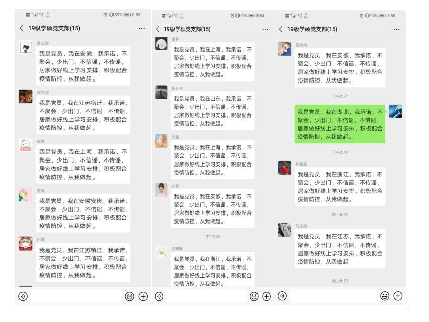 信息学院党委各党支部“同心、同向、同行”,全面落实学校党委要求,切实发挥基层党组织的战斗力、组织力、执行力、凝聚力和服务力,学院各级党组织和广大师生党员把初心落在行动上、把使命担在肩膀上,勇于担当,不忘初心,践行使命,筑牢疫情防控的坚强堡垒。