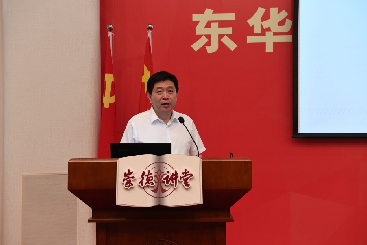 7月3日下午,2020年新教职工入职培训暨“崇德讲堂”师德师风专题培训在松江校区开班。校长、中国工程院院士俞建勇出席并作入职培训首场主题报告,党委副书记刘淑慧出席仪式,相关职能部门负责人参加。仪式由副校长李炜主持。