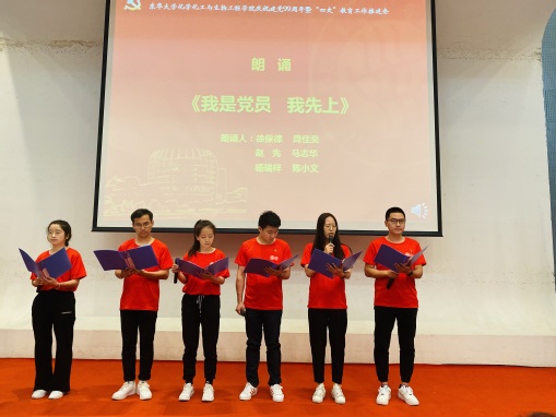 一个支部就是一座堡垒,一名党员就是一面旗帜。会上,学院新发展的研究生党员们带来朗诵《我是党员,我先上!》朗。“我是党员,我先上!”不仅是党员扛起责任、奋斗在前的豪迈誓言,更是党员担当作为、冲锋在前的行动注解。全体党员共同重温入党誓词,永远牢记党员责任与使命,初心不改,99如一。