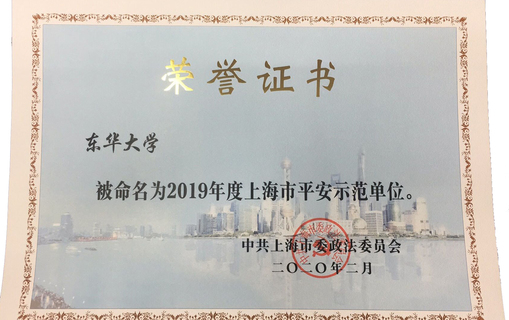 近日,我校被上海市委政法委授予“2019年度上海市平安示范单位”。该奖项旨在表彰学校为推进安全保卫工作,提升平安校园创建水平,牢固树立安全责任意识,积极营造安全稳定的社会环境所作出的贡献。