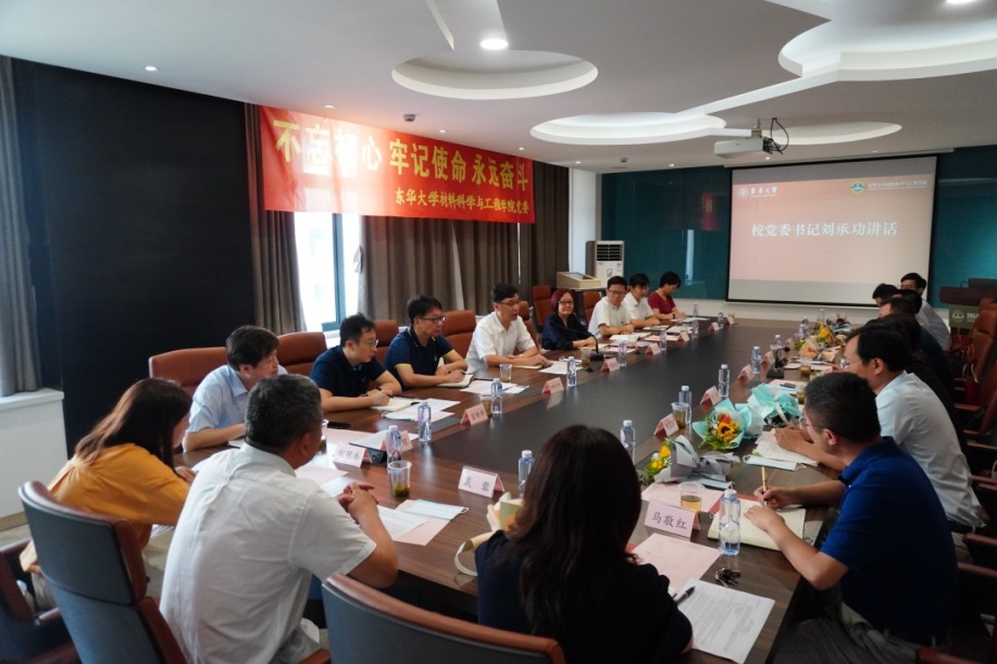 刘承功一行专程慰问了2019年新晋中国科学院院士朱美芳。在与材料学院教师代表座谈会上,他对学院教师在人才培养、科学研究、社会服务等方面的工作给予充分肯定。值此总结“十三五”、谋划“十四五”的重要时期,刘承功希望广大教师要胸怀世界百年未有之大变局和中华民族伟大复兴战略全局,着力提升学科发展的厚度和宽度,大力推动科学技术创新和优秀人才培育;要进一步加强对青年教师的培养,引导他们努力争做有情怀、有使命感的好老师,担负起立德树人的光荣职责与使命;要加强学校人事人才制度改革,大力营造有利于激发各类人才积极性和创造力的人才生态环境。同时加强优秀教师典型宣传,弘扬榜样力量。刘承功最后强调,全校教职员工要不忘初心、牢记使命,砥砺奋发、开拓进取,为教育事业及“奋进东华”建设做出更大贡献。