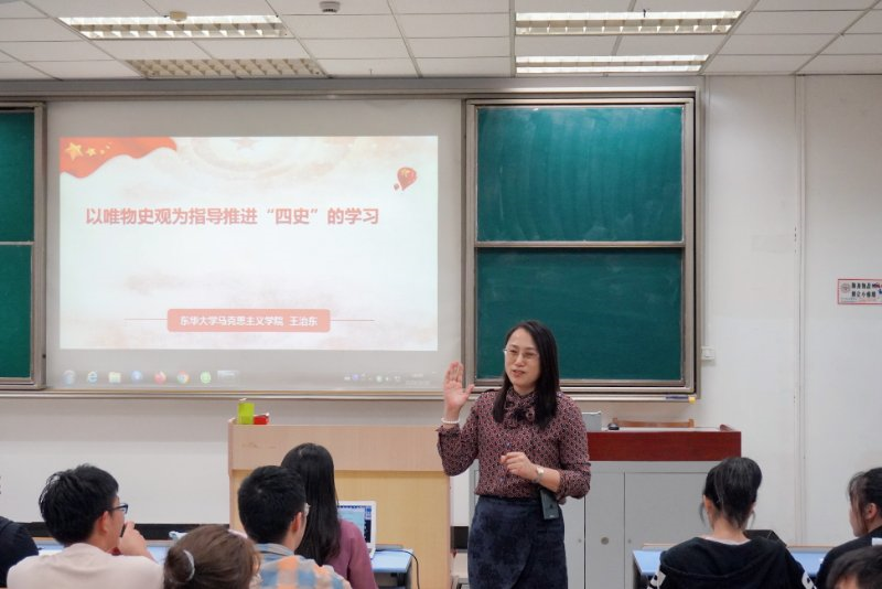 10月10日晚我校松江校区2229教室灯火通明,座无虚席。马克思主义学院院长王治东教授以“坚持以唯物史观推进四史学习”为主题,给160余名学生带来《走进“四史”》系列课程首讲。