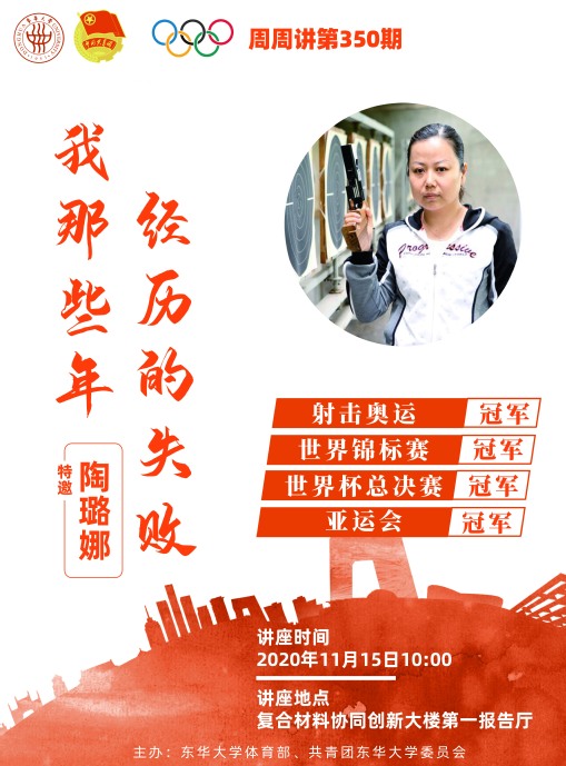 主讲人介绍: 陶璐娜:射击奥运冠军,国际运动健将。1997年夺得运动生涯首个射击世界杯总决赛女子运动手枪项目冠军。整个运动生涯获得6次世界杯总决赛冠军。2000年获得第27届悉尼奥运会女子10米气手枪金牌,为中国代表团夺得首金。25米运动手枪获得银牌。多次当选国际射击联合会最佳女射手及全国十佳运动员。多次破世界纪录、亚洲纪录。2010年后历任上海市自行车击剑运动中心副主任、上海市,体育局青少年体育处副处长、上海市射击射箭运动中心副主任。荣获1997、1998、2000、2001、2002年国家体育运动荣誉奖章,2000年全国五一劳动奖章,2000年全国三八红旗手,2000年中国青年五四杰出贡献奖章,2000、2002年全国“十佳运动员”称号,2000年上海市劳动模范,2000年上海市三八红旗手标兵、“巾帼建功”标兵,2000年上海市新长征突击手标兵,2001年上海市人民政府记大功,2001年上海市十大杰出青年,2001—2002年度上海市三八红旗手,2000、2001年度“世界最佳女射手”等殊荣。第十四届、十五届上海市人大代表。
