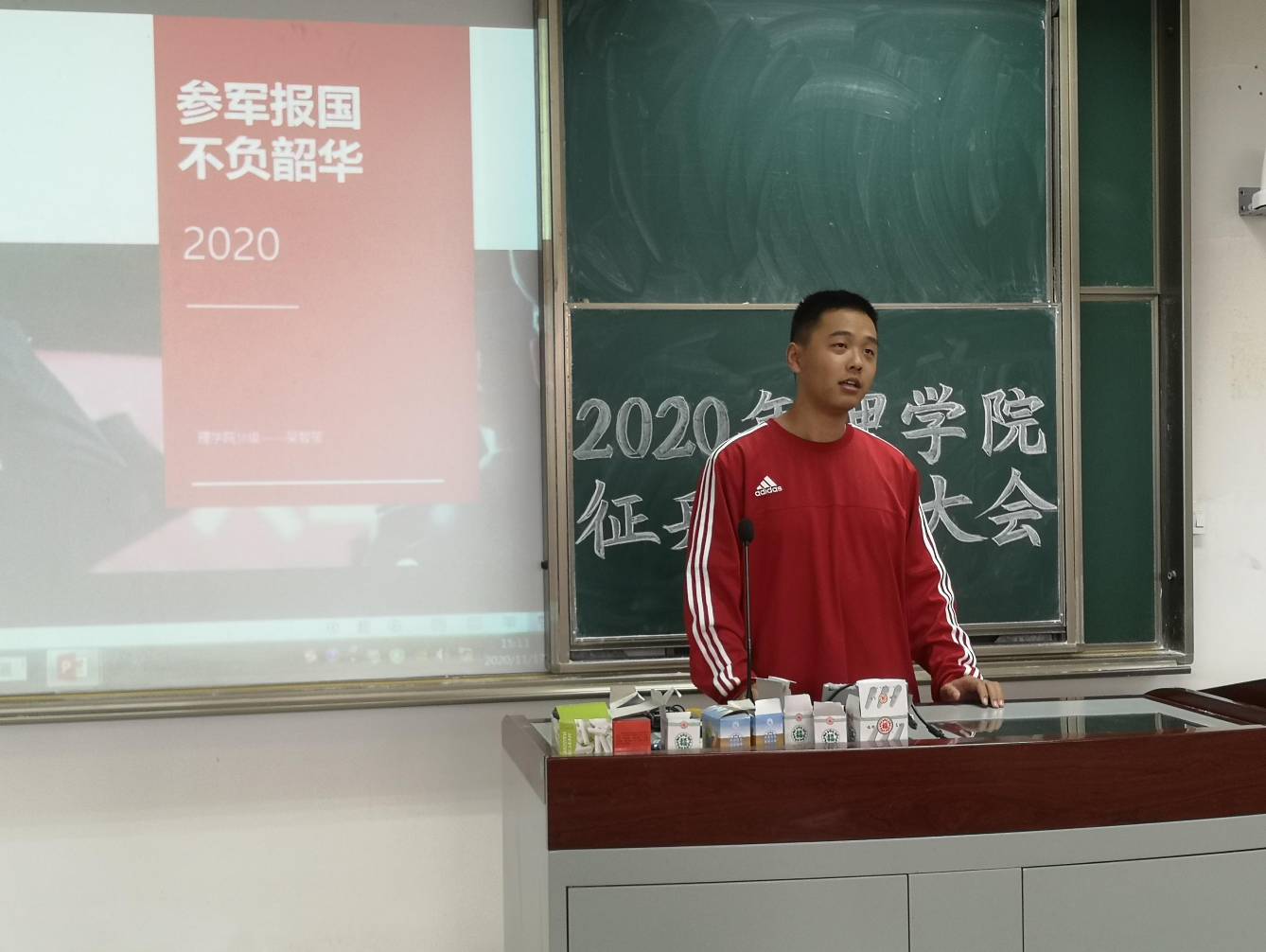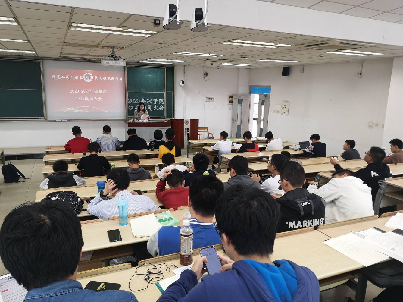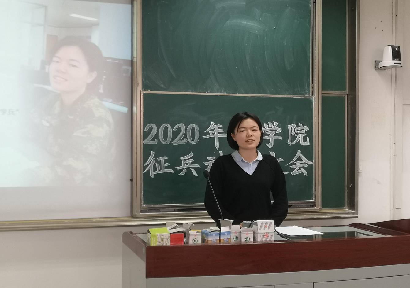 动员大会在国歌声中拉开序幕。姚洁从“优待政策”“身体条件要求”“常见问题”三个方面为学生作了全面、系统、清晰地讲解。入伍大学生在学业、落户、就业、提干、优待金方面都有着优厚待遇,她叮嘱有志于入伍的学生练就强壮的身体、养成健康的生活习惯以准备征兵体检。关于参军的时间、地点、纪律、生活等学生密切关注的问题,姚洁一一进行耐心解答。