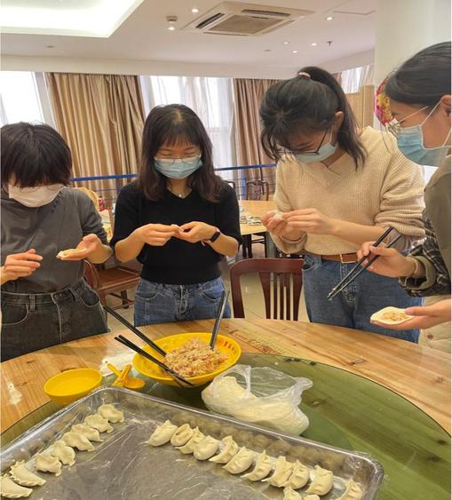 温暖不设限。为进一步关心留校团员青年,校团委还精心组织留校学生临时团支部开展图书馆惊喜慰问、大厨教你包饺子等活动,一句问候、一瓶酸奶、一份文创、一盘饺子……小小的举动,为留校学习的同学加油鼓劲,让温暖在留校团员中传递。计算机学院任楚潼同学在收到图书馆惊喜慰问的酸奶后表示,“突然有一种家的感觉,爸爸妈妈请你们放心,我在东华过年挺好的!”团员青年们也将这份温暖回馈给陪伴大家过年的食堂师傅,为一直暖心为同学们服务的后勤师傅们送上了来自团支部成员的温馨祝福。