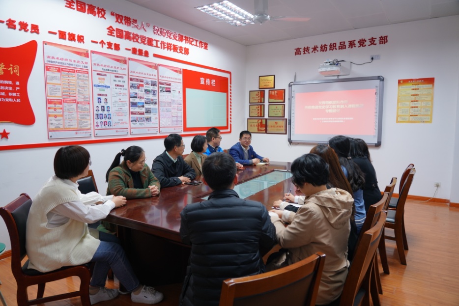 集体备课制度一直以来就是纺织学院课程思政建设的一项重要“法宝”,它为学院教师尤其是青年教师课程思政教学能力的增强和育人水平的提升提供了有力保障。3月25日,上海市课程思政计划领航团队、高技术纺织品系党支部围绕“发挥领航团队作用,积极推进党史学习教育融入课程思政”的主题召开集体备课会。备课会上,领航团队中的教学名师、专业带头人、骨干教师等围绕如何用好红色资源、丰富课程内容、创新教学形式进行了深入研讨,切实推动党史学习教育“融盐于水”。