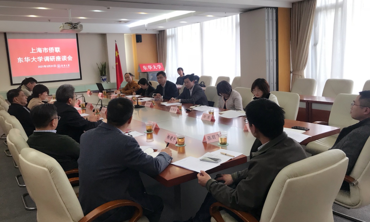 3月31日,上海市侨联副主席徐大振一行来我校松江校区调研交流。随行的还有松江区委统战部副部长、区侨联党组书记、主席陆洪明等。校党委常委、统战部部长朱英,校侨联主席朱利民、长宁区侨联副主席王宏志、校侨联副主席史向阳、吴状春、游正伟,市、区侨联和学校统战部、侨青委成员等共同参与座谈会。会议由朱英主持。