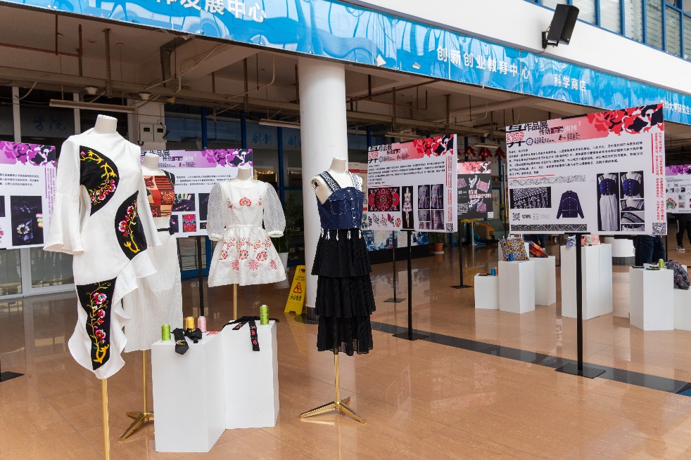 “千年彝绣·传统遇见时尚”系列作品展于4月20日至22日在松江校区大学生活动中心展出。展览期间,学校相关部处、纺织学院、纺织面料技术教育部重点实验室负责人和相关老师莅临现场,与同学们一同观展,活动吸引了500余位师生,百余位还饶有兴致地参与了手工体验。