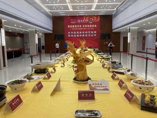 本次活动共有50道创意参赛菜品、50道特色展示菜品供师生代表品鉴,菜品展示分为“回首往昔忆峥嵘”“砥砺奋进铸辉煌”“凝心聚力谱华章”述了中国共产党从南湖红船到巍巍巨轮辉煌发展的历史足迹,寄寓着每一个东华餐饮人对于新时代中国特色社会主义发展的美好祝福。100道美食不仅在寓意上有所考量,更追求菜品的色香味俱全,以高水准的品质和高颜值的造型赢得了师生代表们的广泛好评,参加本次活动的东华大厨们曾在中国高校烹饪技术大赛和上海高校创新菜肴、创新点心大赛等多个比赛中摘金夺银,不仅厨艺精湛,更独具匠心。