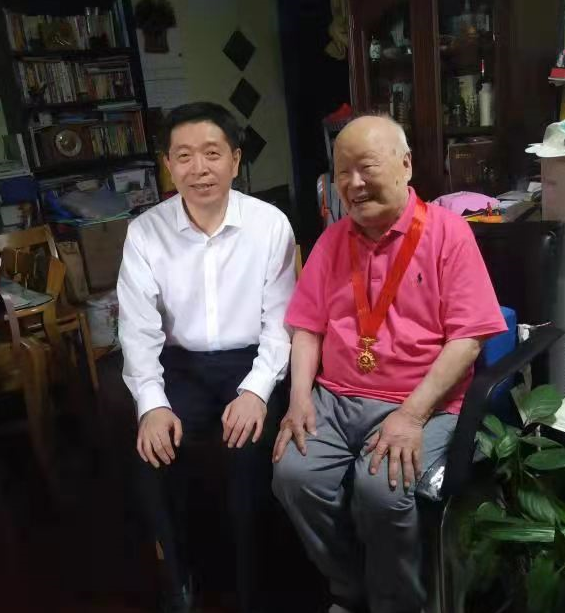 (俞建勇慰问离休干部周启澄、中国工程院院士周勤之并为其颁发纪念章)