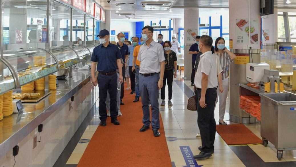 校领导一行实地走访校门、教师之家和东大招待所留观点、食堂、学生宿舍、大学生活动中心、在建工地、教学楼、相关学院、实验室、校医院、保卫处、图书馆、体育馆等校园重点场所,认真检查学校疫情防控、教学设施、安全保卫、宿舍修缮、环境整治、军训场所等方面的开学准备工作。
