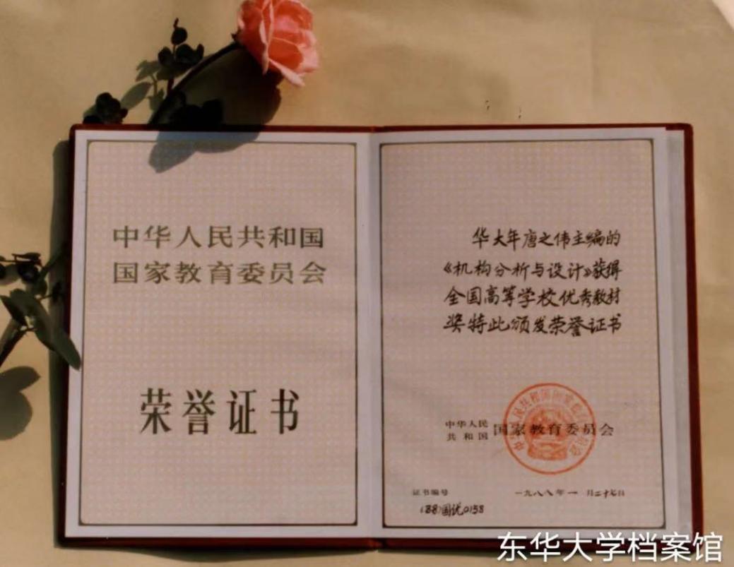 1982年,纺织部教育司副司长沈帆同志到我校调研,教务处徐灿华等同志介绍《应用机构学》一书,后在纺织部教育司的协调下,将《应用机构学》与《纺织机械机构学》(天津纺织工学院)去粗取精,合并为一本书,定名为《机构分析与设计》,华大年、唐之伟(天津纺织工学院)主编,篇幅我校占三分之二,天津纺织工学院占三分之一。华老师深知教材之于教学育人的重要性,强调做到“三结合”,即教学与科研相结合、基础与专业相结合、理论与实际相结合。作为“三结合”的产物,《机构分析与设计》成为我国公开出版发行的第一本高等机构学的研究生教材,一经出版广受好评。在1988年全国高校优秀教材评选中,这本书不负众望,摘得国家级优秀教材奖殊荣。