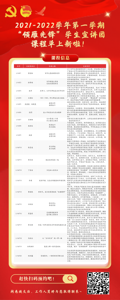 近期,管理学院“领雁先锋”学生宣讲团制作党史宣讲精品课单,精准“滴灌”、“靶向”供给,以“你来点我来讲”自主点单的方式“送课上门”,精心打磨党史宣讲课程20节,通过走进新生入学教育周,以青春力量、青春声音、青春姿态做好红色宣讲员。同时,宣讲团将党史学习教育与社会实践有机融合,先后赶赴江西瑞金、上海、浙江嘉兴等初心之地进行调研、拍摄,打造《开天辟地》行浸式红色互动剧,线上浏览量合计达到1.1万次,探索线上线下“双轨”联动创新工作路径,努力让党史宣讲在开学季更接地气、更聚人气。
