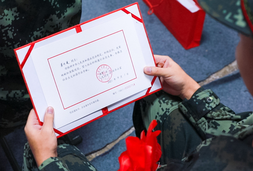 新兵代表旭日工商管理学院大四毕业生赵浩东表示,参军是他无悔的选择,到了部队后一定不忘老师们的嘱托,坚决服从命令、严守纪律、刻苦训练,做到听党指挥、能打胜仗、作风优良,为人民的幸福与安宁扛好枪、站好岗,绝不辜负学校、老师以及父母们的期望。