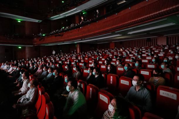 (上海大戏院观众观看红色实验舞台剧《握手》)