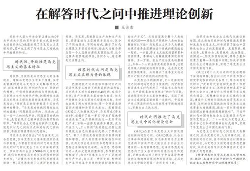 文汇报:刊发马克思主义学院王治东教授署名文章《在解答时代之问中推进理论创新》