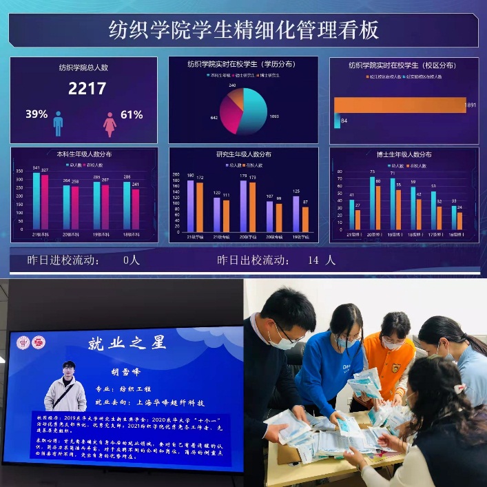 学院各党支部深化开展“我为群众办实事”实践活动,积极践行疫情防控要求,充分发挥党支部战斗堡垒作用和党员先锋模范作用。非织造工程系党支部利用网络积极开展教学、育人和人才培养工作,围绕创新课题申报召开网络视频研讨会,一对一指导学生开展课题申报。学院办公室党支部党员冲锋在后勤保障第一线,及时制定工作预案,安排支部党员在学校转为准封闭管理后,轮流进校到岗值班,为学院师生做好相关服务工作,维持日常教学、科研工作有序开展。实验中心党支部多措并举开展研究生实验室安全教育,切实强化特殊时期的实验室安全管理,确保实验室安全防护和疫情防控措施落实落细。学生工作办公室积极推进就业育人,准确把握毕业生思想动态和就业需求,融合“云端就业”新通道,实施全程化、多元化和精细化的就业指导与服务,努力打赢抗疫大考下的就业攻坚战。学生党支部广大党员冲锋在前、投身一线、勇于担当,积极参与学校生活物资爱心接力、全员核酸检测志愿服务等工作,助力学校打赢疫情防控突击战。
