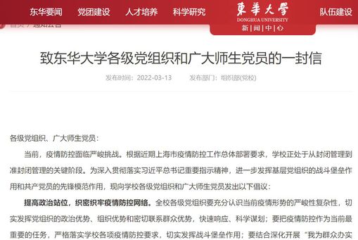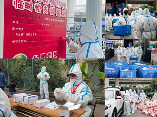 广大师生党员切实做到“一个党员一面旗帜”,发挥自身优势、立足本职岗位践初心、担使命,以东华人的顽强意志和奋斗精神,构筑起抗击疫情的“红色防线”,凝聚众志成城、共克时艰强大正能量。服装与艺术设计学院党委国旗护卫队支部党员积极响应党委“防疫行动号召”,主动请缨承担校园巡逻、志愿服务等工作,化身“健康使者”,守护校园平安;计算机学院党委“IT筑梦人”本科生党支部毛欣煜等退伍军人,积极参加校内免费理发活动,帮助在校师生解决“头”等大事;化工生物学院党委开辟“花生仁同心抗疫”报道专栏,依托融媒体矩阵讲好抗疫身边故事,传递党员先锋正能量;外语学院党委党员领导干部牵头,成立由教师党支部书记为主体的疫情防控教育教学工作小组,线上听课、研讨,全面保障学校公共英语课程教学质量;马克思主义学院党委研究生党员积极探索线上课堂,坚持开展“红色文化进附校” 系列德育精品课程,结合“3·5·学雷锋”多角度阐述伟大抗疫精神;联合学院党委全体党员教师、国际生辅导员等通过住楼、送餐、线上思想引导等多种形式加入校园战疫保障队伍,克服一切困难守护学生健康平安;体育部党总支教师党员积极响应号召,到社区一线报道,参与新冠抗原自测志愿工作,用全天候的坚守,为阻击疫情贡献一份高校力量;机关党委、科研教学平台联合党委牵头组建青年志愿服务先锋队,轮班轮岗做好日常防护宣传、食堂测温、核酸检测疏导等联防联控服务保障工作;后勤集团党总支采办、厨师、后勤党员是全体后勤教职工的缩影,她们立足本职岗位展现担当,全力保障全校师生多餐供应,让东华校园在疫情“倒春寒”里充满温暖;离休党总支多位局级退休干部还积极发挥老党员先锋模范作用,主动在社区担任抗疫志愿者,为全民抗疫、服务群众贡献东华人的宝贵力量。