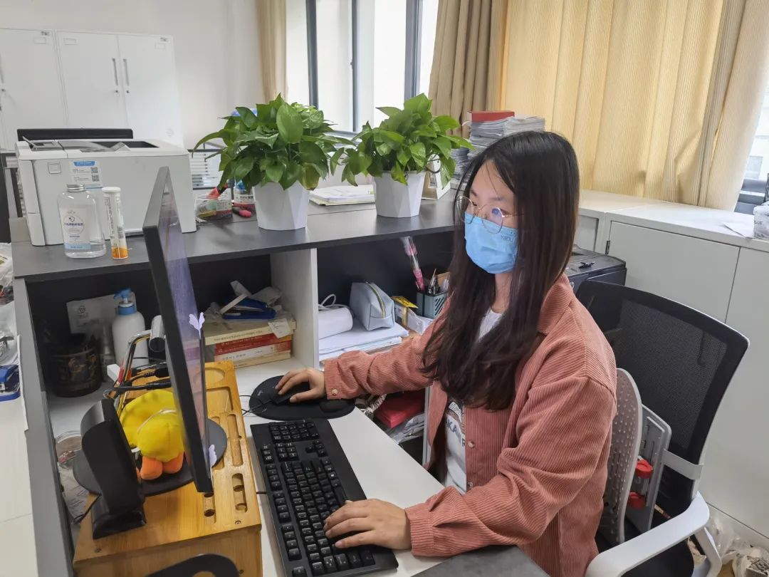 “95后”的刘玉洁老师是环境学院的教务员,她已经连续在办公室坚守岗位二十多天了。工作的热情,让她顾不上“春寒料峭”,学校早就成了疫情期间的家。协助在校教师调试线上教学设备、及时提供大学生创新训练项目的咨询和材料办理、时刻关心同学们的线上学习状况……除此之外,她还承担了学院疫情防控相关物资购买及管理工作,尽可能最大程度满足在校师生的需求。