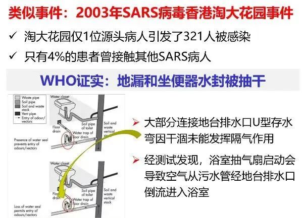 对比分析SARS香港淘大花园事件,深入浅出讲授建筑排水系统在 “阻断病毒通过气溶胶传播” 方面重要性