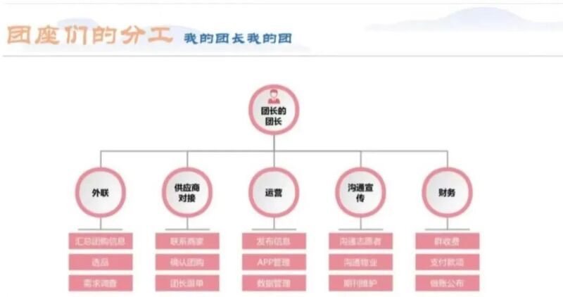 “社区团购可以看作是一个工程,团购的参与人员可以看作是工程的六大部门,包括外联部(收集居民刚性需求、提出采购计划)、供应商对接(筛选供应商资、鉴定货品内容和供货时间)、运营部(进行团购数据处理、生成团购订单)、沟通宣传部(与物业和志愿者沟通团购进展、动态、安全注意事项)、财务部(核对订单数据、付款及记账)、物资部(组织志愿者分发物资)。”