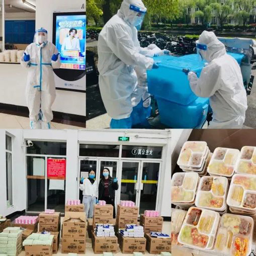 校园静态管理期间,学生党员、退伍大学生、楼层长与校领导、教授、辅导员、行政管理人员、后勤保障人员等共同组成了餐食物资的“接力队伍”。一双双把握生命脉搏的手,在无声的挥汗如雨中,接续传递校园脉搏。