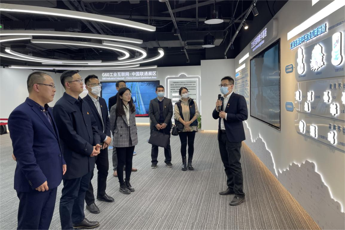 在松江联通网络部副总经理张春华的讲解下,大家参观了长三角G60工业互联网创新应用体验中心上海联通工业互联网展示厅,了解了上海联通聚焦5G+工业互联网的一系列务实举措,真切感受“互联网+先进制造业”为特色的5G+工业互联网建设成效。