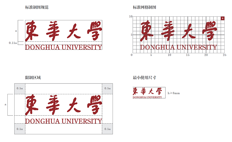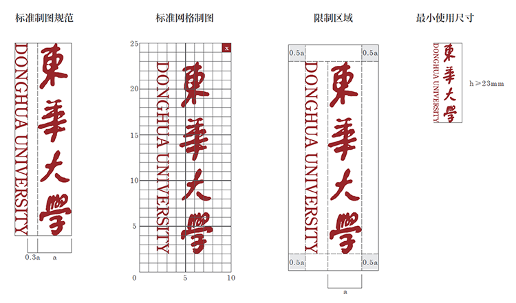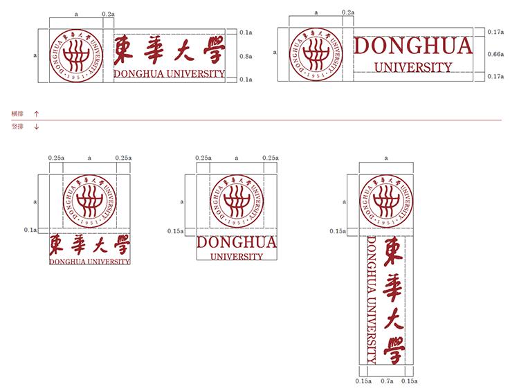 我们在版面中具体定义了标识与版面边缘的距离,即以校徽的高度为一个单位a,其所在画面中的位置与版面边缘的距离不能小于0.8a,请严格按照规范使用制作。