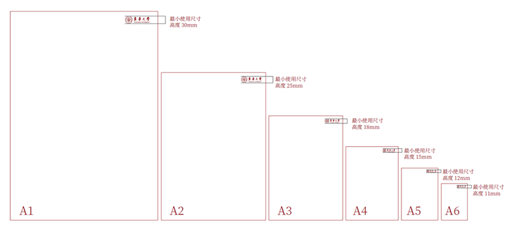 由于标准纸大小为倍数关系逐级递增,所以相对的标志大小亦等量逐级递增。超出A1大小的纸张尺寸请等比计算,得到正确的标志大小。