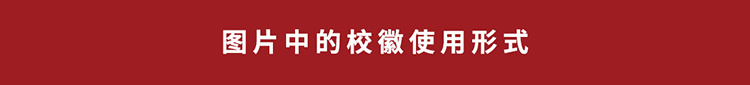 校徽在图片中使用时分为两种情况——浅色背景与深色背景。当标志在浅色背景与深色背景上使用时,为保证标志的识别度,请如右侧所示,将标志放置透明度为90%的白色品牌框中使用。